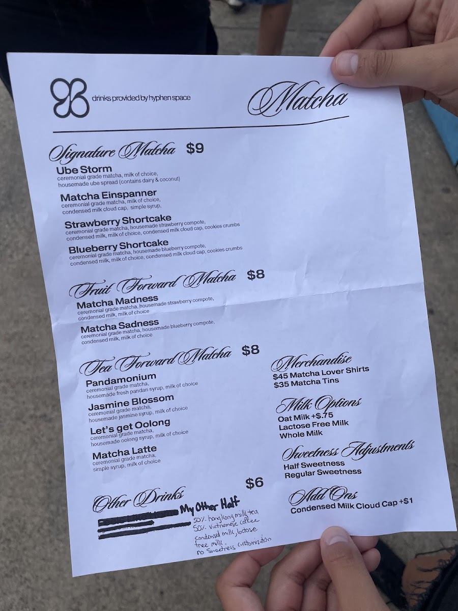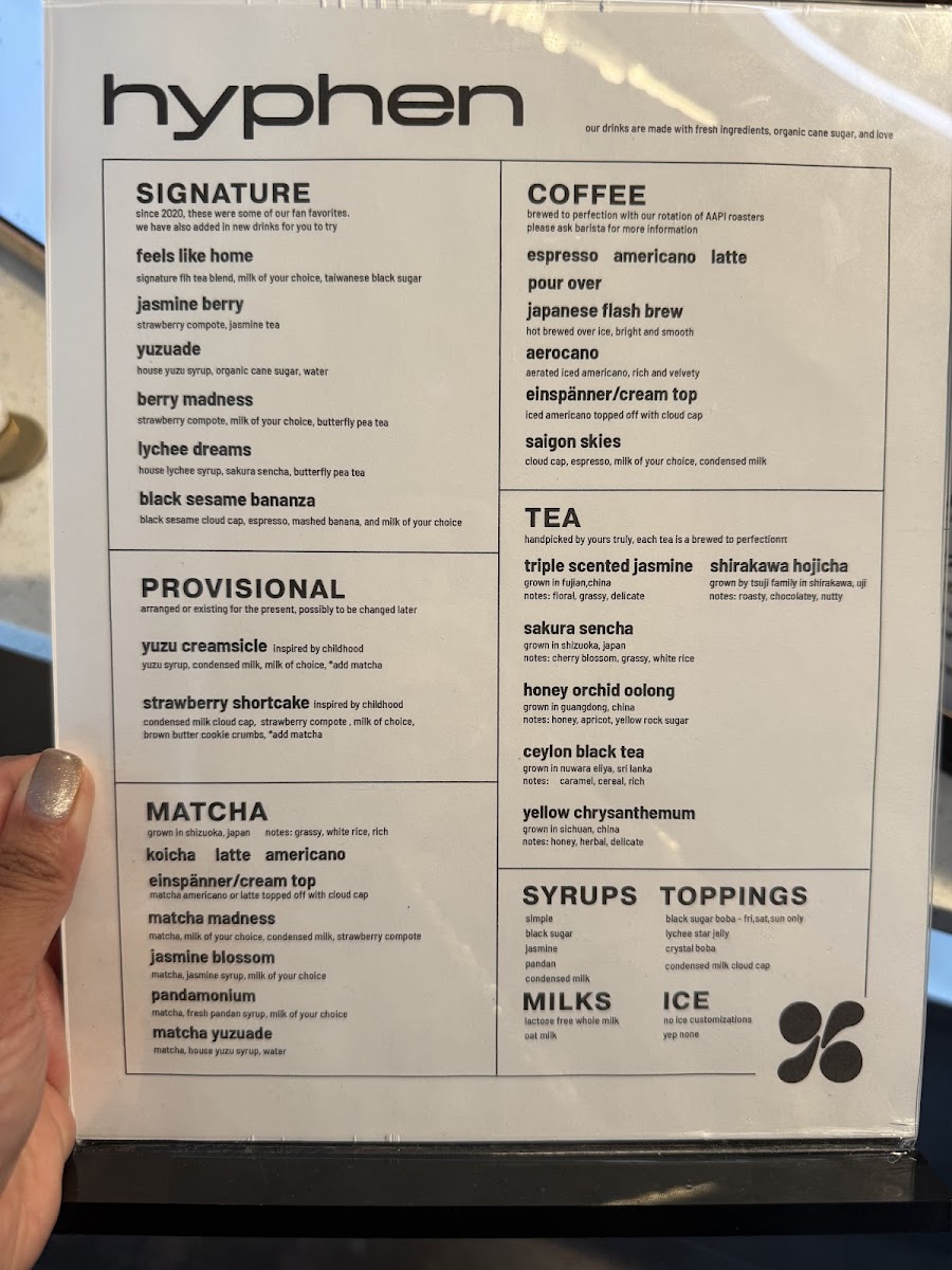 But it doesn't stop there! Hyphen Space also features a curated selection of aromatic teas, such as the Triple Scented Jasmine, known for its floral and grassy notes, and the rich, smoky Shirakawa Hojicha. These options provide delightful alternatives for those looking to explore beyond matcha.
